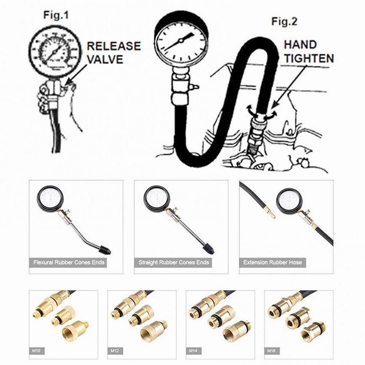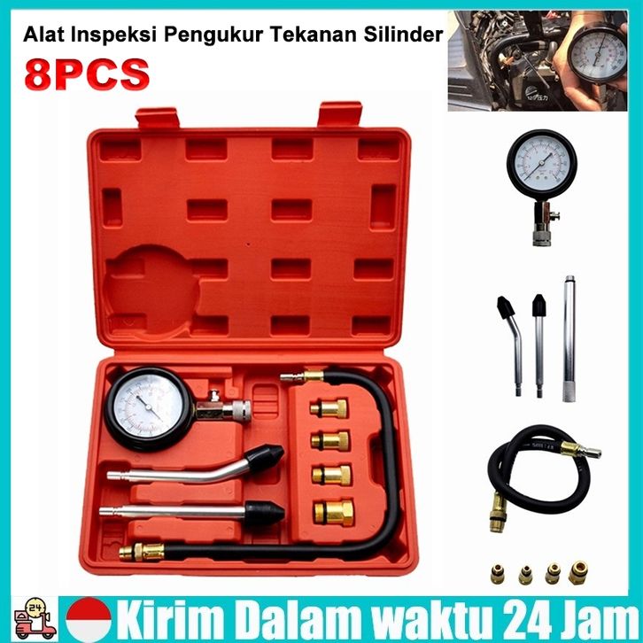【Stok Tersedia】8Pcs Set Tester Kompresi Silinder Mesin Mobil Alat Pengukur Tekanan Gas Mesin Cylinder Compression Tes K