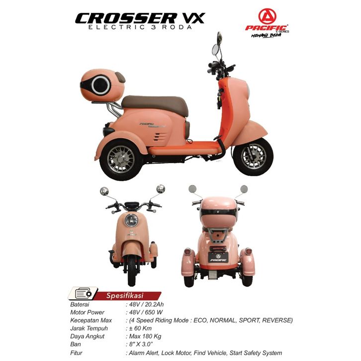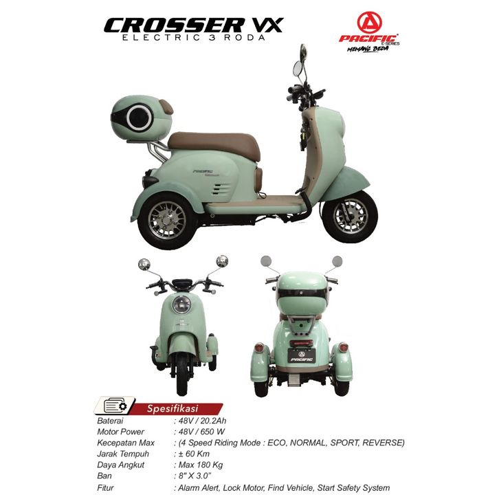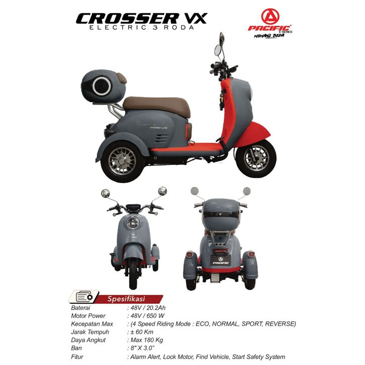 SEPEDA LISTRIK 3 RODA MURAH E-BIKE POWER 650 WATT CROSSER VX - PACIFIC