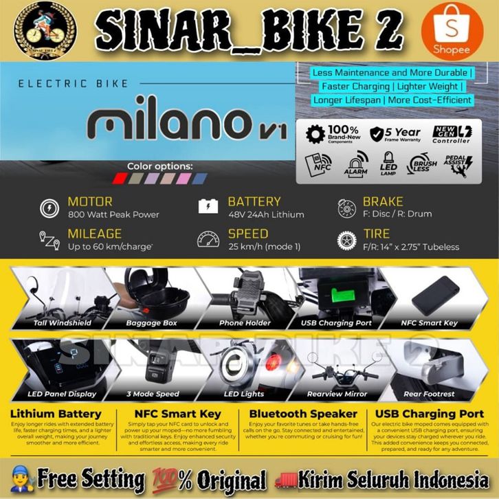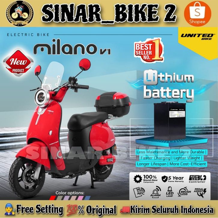 Sepeda Listrik UNITED Bike MILANO V1 Electric bike 800 Watt Baterai Lithium