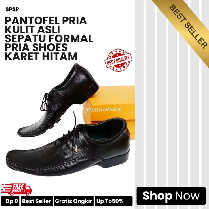Sepatu Pantofel Pria Kulit Asli Sepatu Formal Pria Shoes Karet Hitam