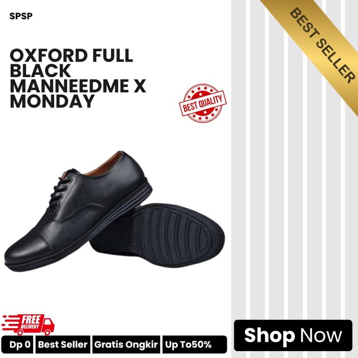 SEPATU OXFORD FULL BLACK ManNeedMe x Monday Sepatu Pantofel Pria Formal Shoes Kantor Pdh ORIGINAL