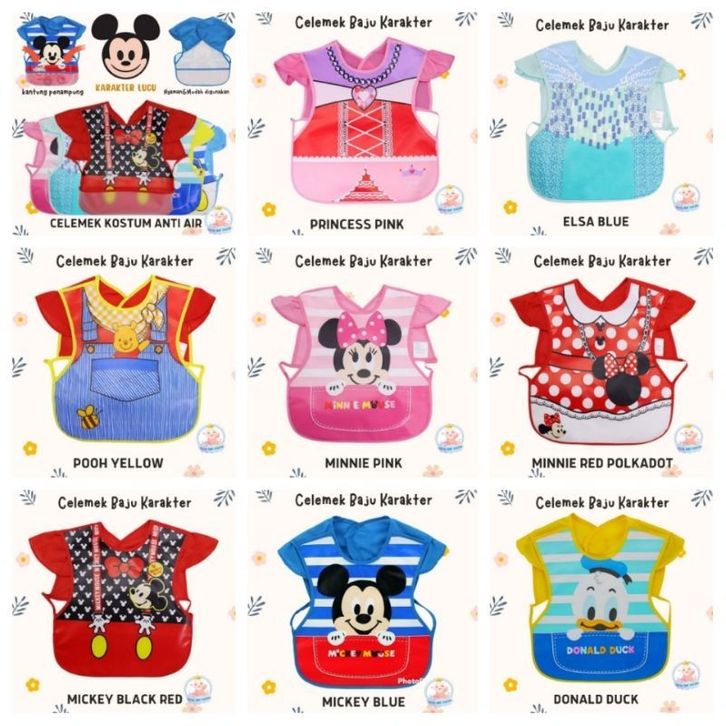 Donald duck, Elsa blue, Mickey biru, Mickey black red, Mickey polkadot, Minnie pink, Pooh, Princess pink, cewek lengan panjang, cowok lengan panjang