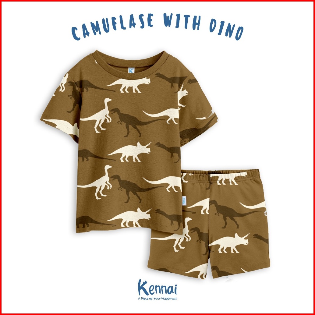 Kennai Setelan Anak Camuflase With Dino Full Print Series Laki Laki Perempuan 1-12 Tahun