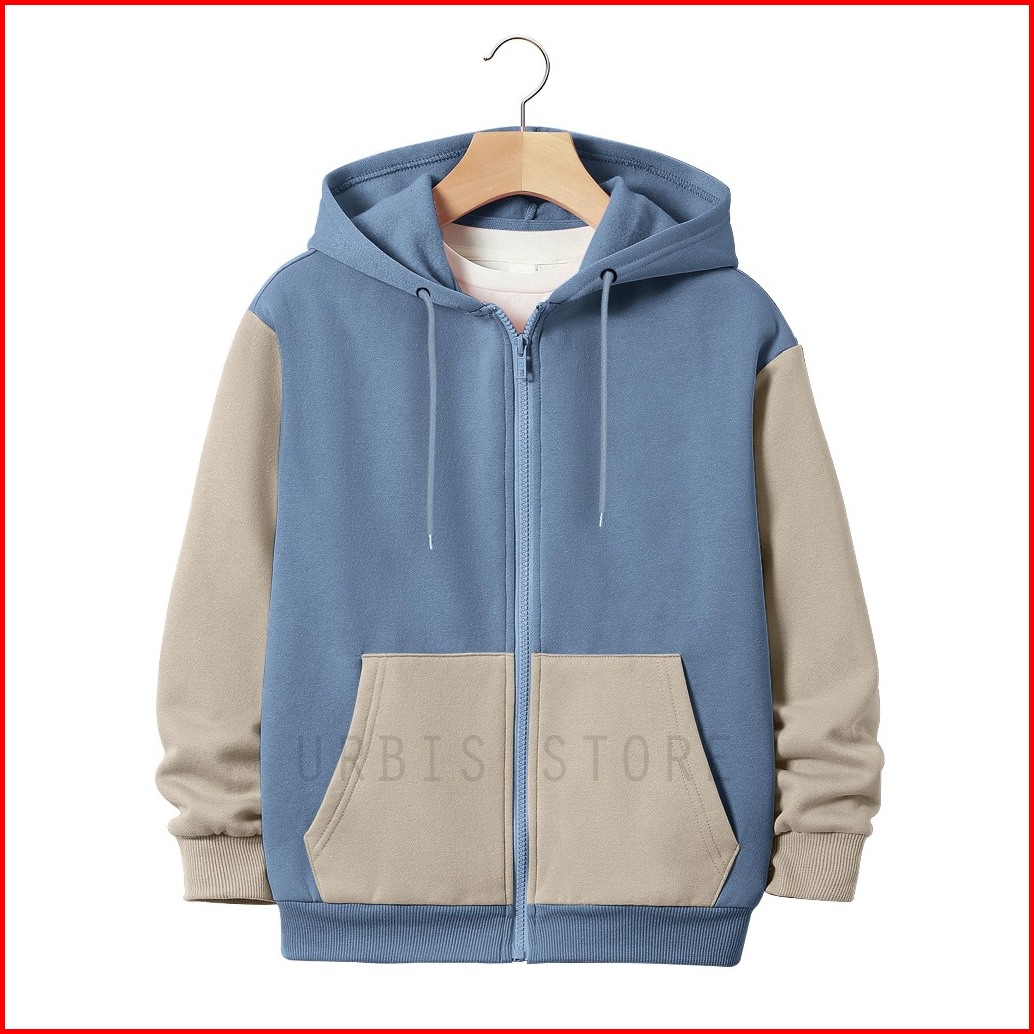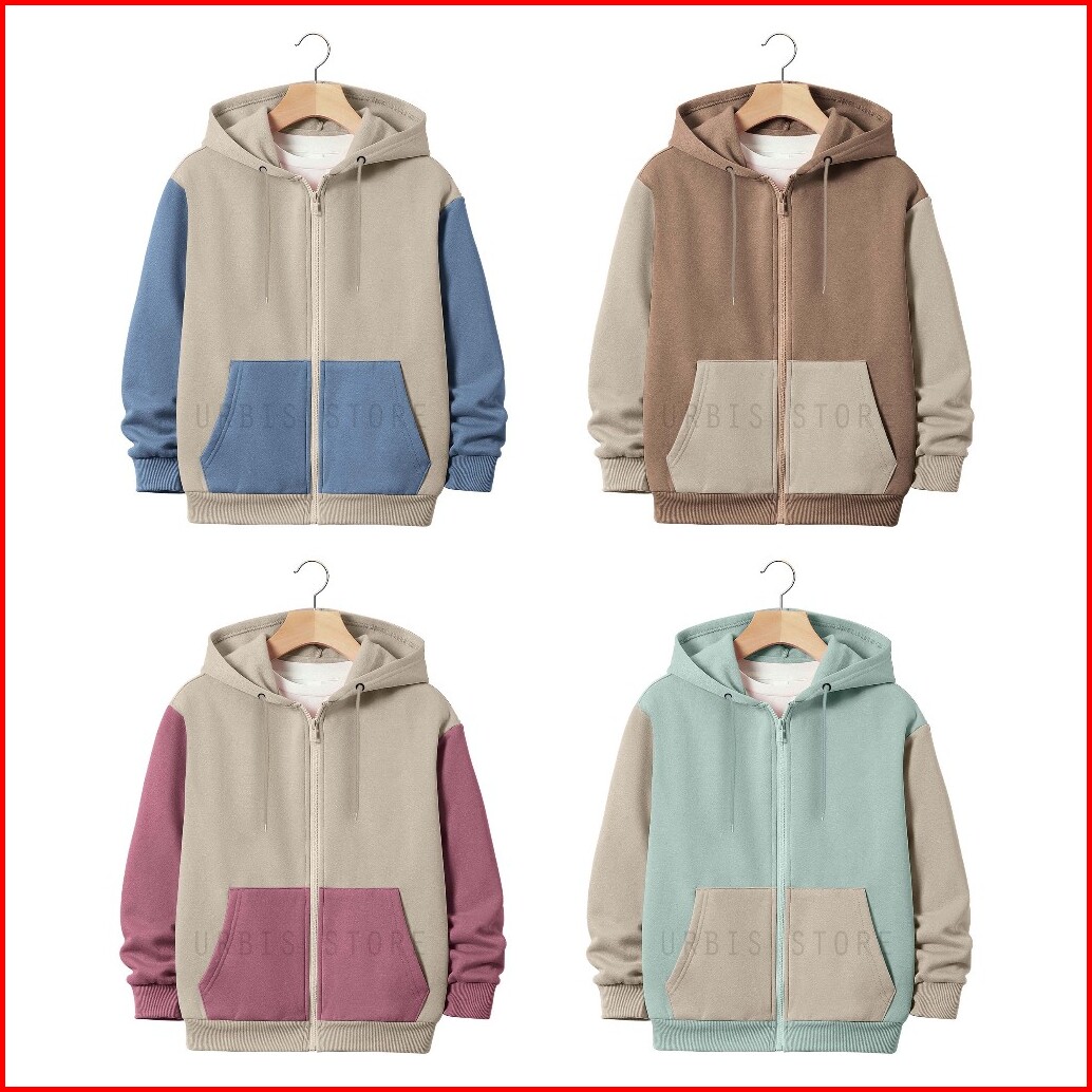 Jaket Zipper Polos Anak Laki-laki Perempuan Usia 3-13 Tahun Kombinasi Bahan Fleece Tebal Urbis