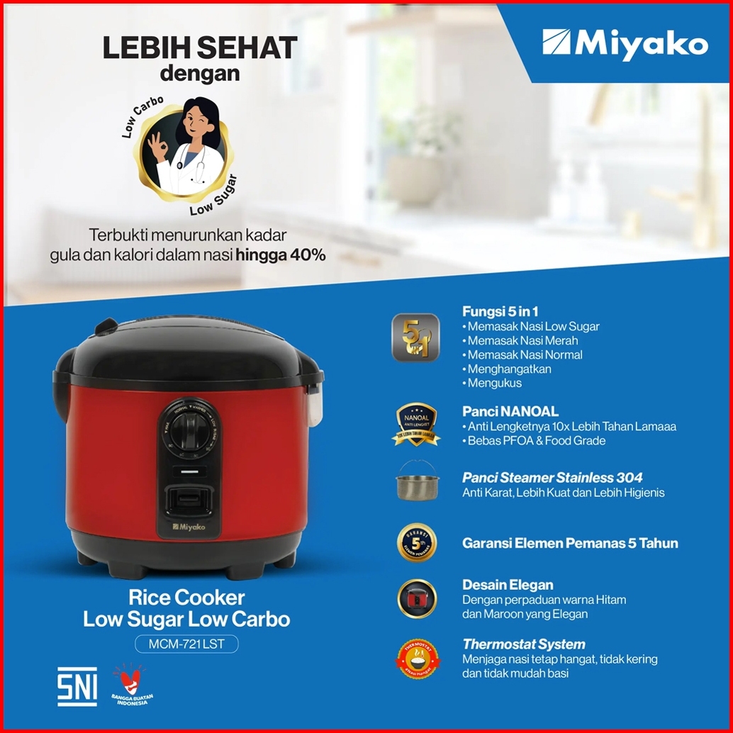 Ready Miyako Rice Cooker Magic Com Low Sugar Rendah Gula Mcm-721 Lst Mcm 721 Lst Mcm721 Lst 1 8 Liter Garansi Resmi