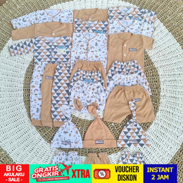 Paket 24pcs baju bayi lengkap topi saruPaket 24pcs baju bng tangan kaki baby newborn Baju celana pendek bayi CERIA TASIK