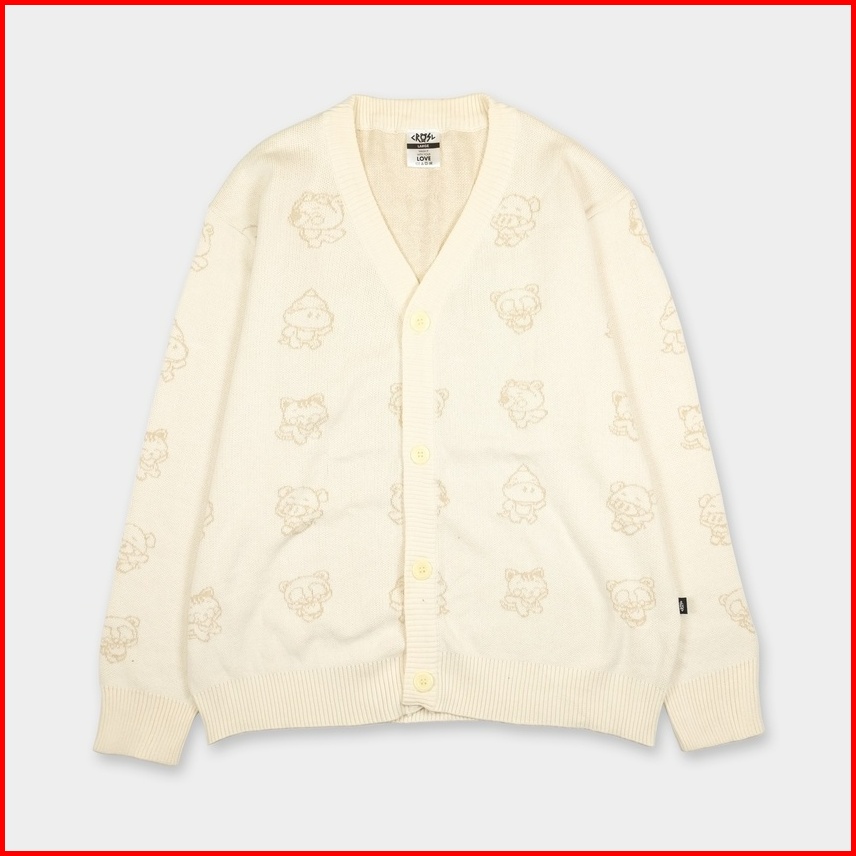 Crsl White Pattern Cardi Cardigan Unisex Rajut Knitwear Outer Atasan Oversize Unisex Pria Wanita