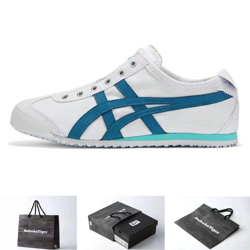 Sepatu 0nitsuka original mexico66 slip-on white blue/tosca