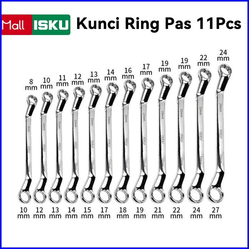 Isku Kunci Ring Pas Set 11 Pcs 8-27mm Alat Perkakas Tools Kunci Ring Pas 1 Lengkap