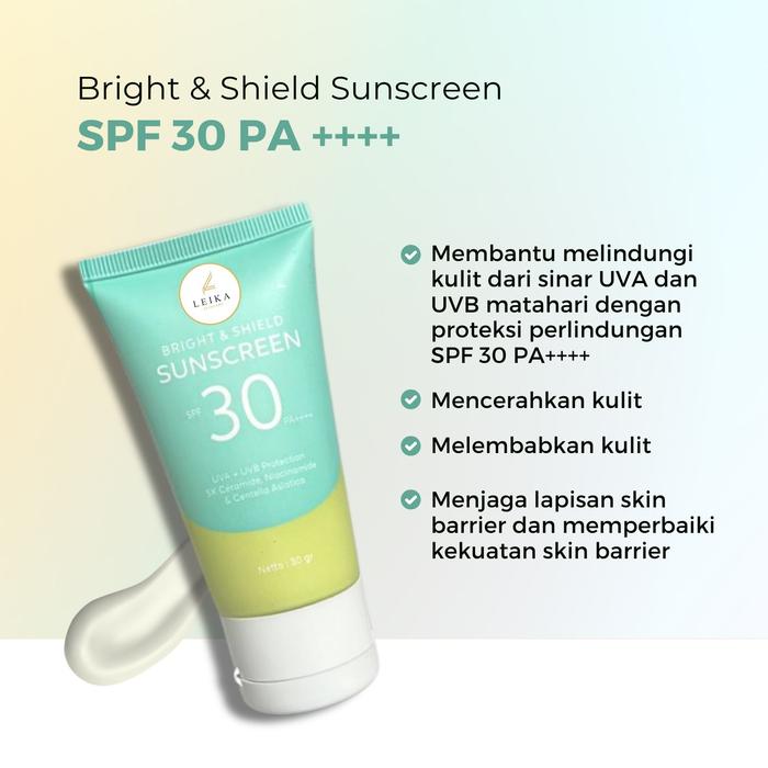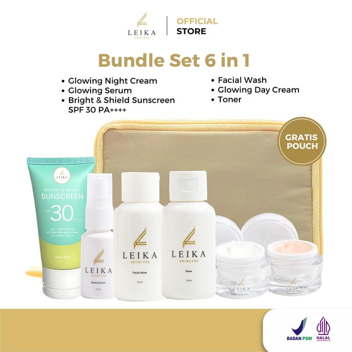 Leika Skincare Paket 6 in 1 Bright & Shield Sunscreen SPF 30 PA++++, Glowing Day Cream, Glowing