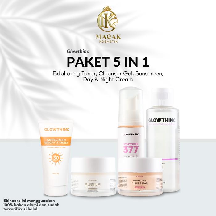 Glowthinc Skincare Paket 5 in 1 Toner Day Night Cream Sunscreen Cleanser Gel Paket Flek Hitam