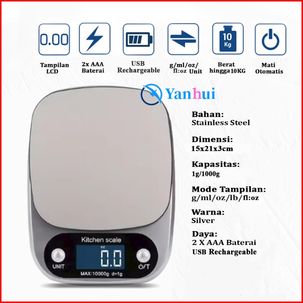 Timbangan Digital Usb Charge 10kg Premium Kitchen Scale High Quality