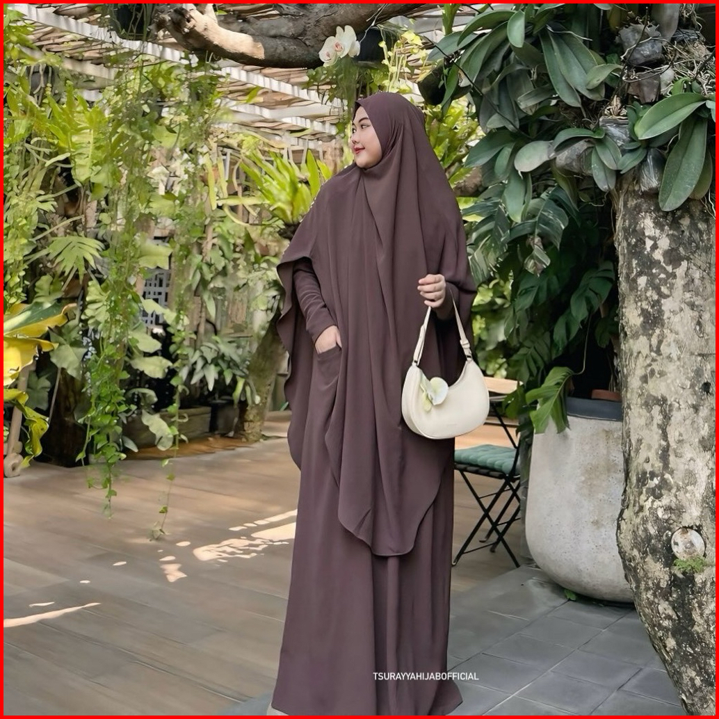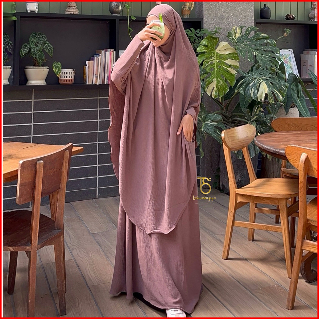 Tsurayya - One Set Elmaira Abaya Dan Frenckhimar Bahan Crincle Airflow Free Cadar Tali Crincle One Set Umroh Haji