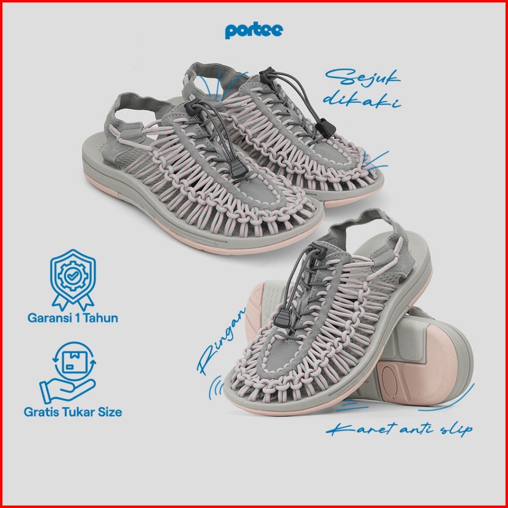 Sandal Wanita Portee Loom Sandal Grey Pink Sandal Outdoor Sandal Gunung Sandal Traveling