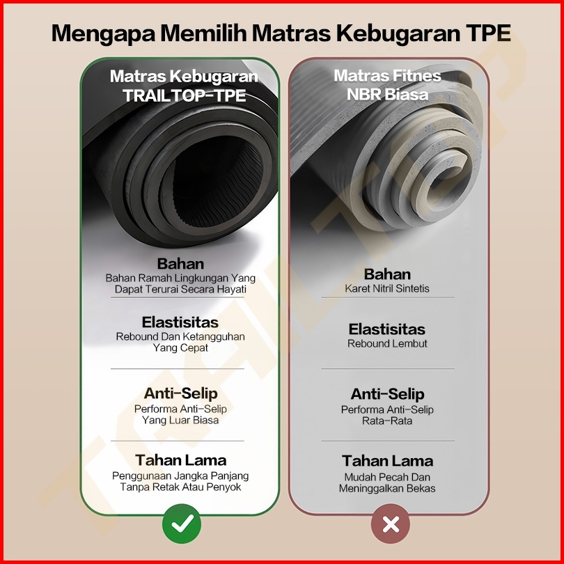 Trailtop Matras Olahraga Tpe Matras Yoga Pola Anti Slip Berkerapatan Tinggi Untuk Pemula Guru Yoga