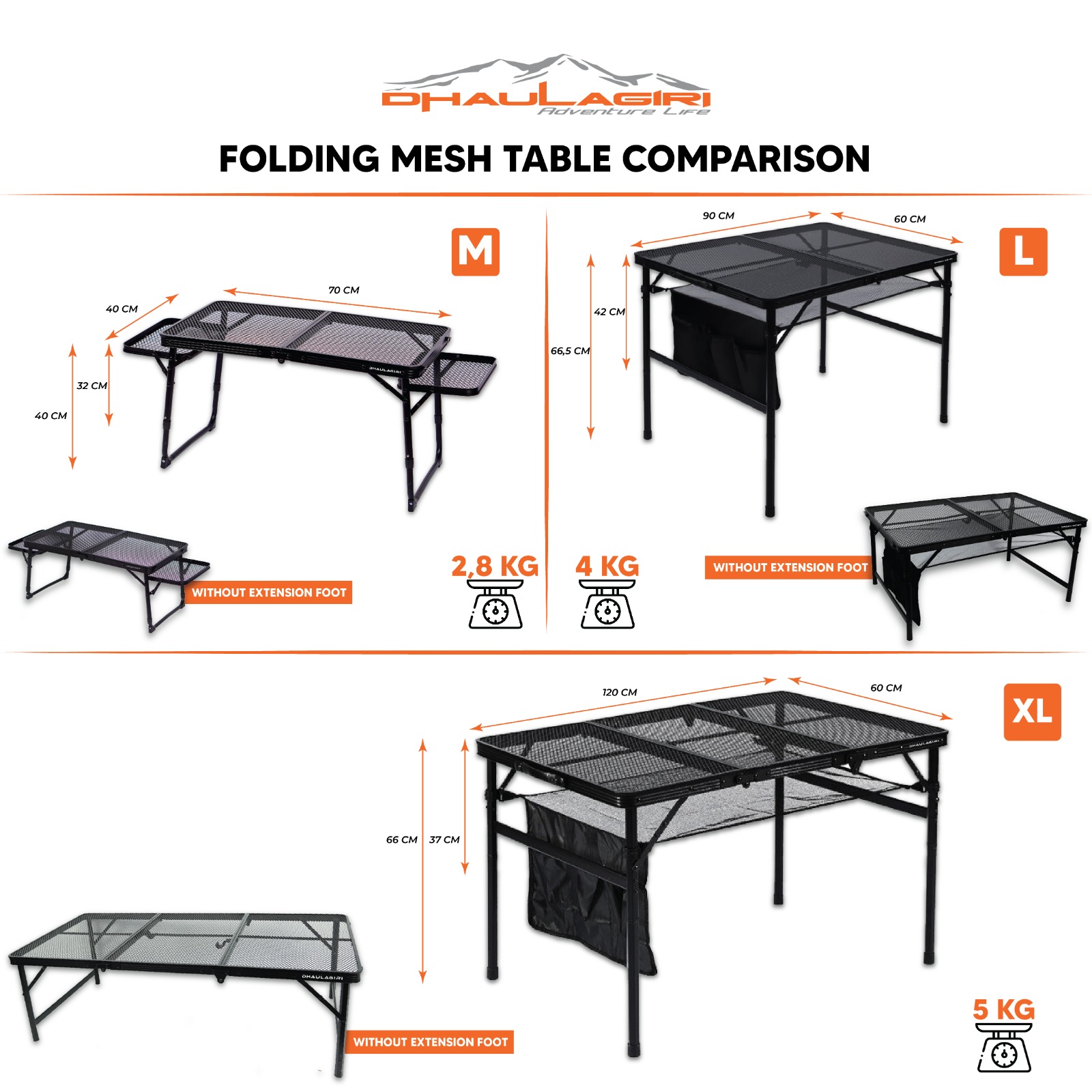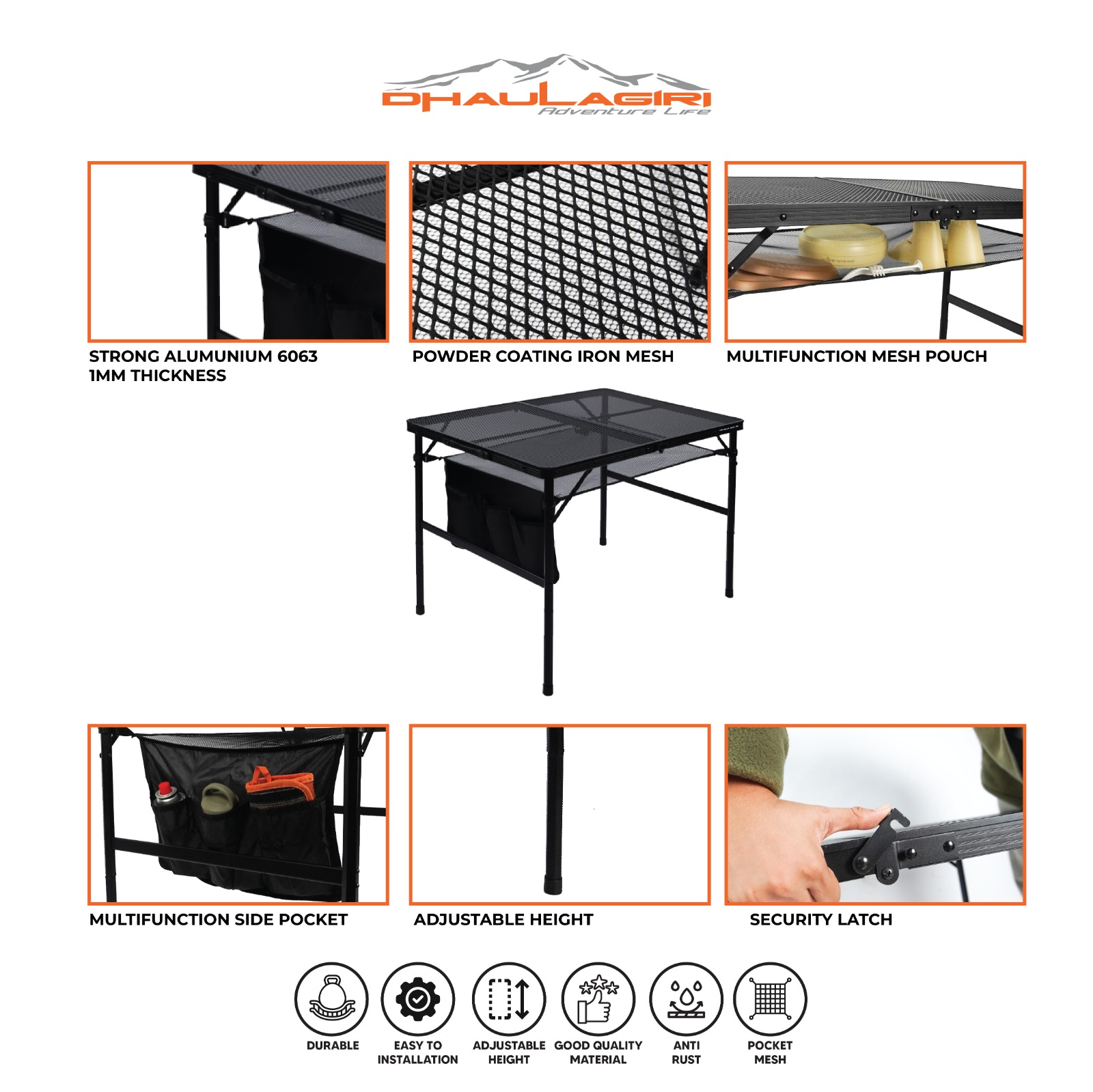 DHAULAGIRI FOLDING MESH TABLE L / MEJA LIPAT CAMPING / MEJA LIPAT DENGAN TAS MUDAH DIBAWA / MEJA LIPAT ESTETIK