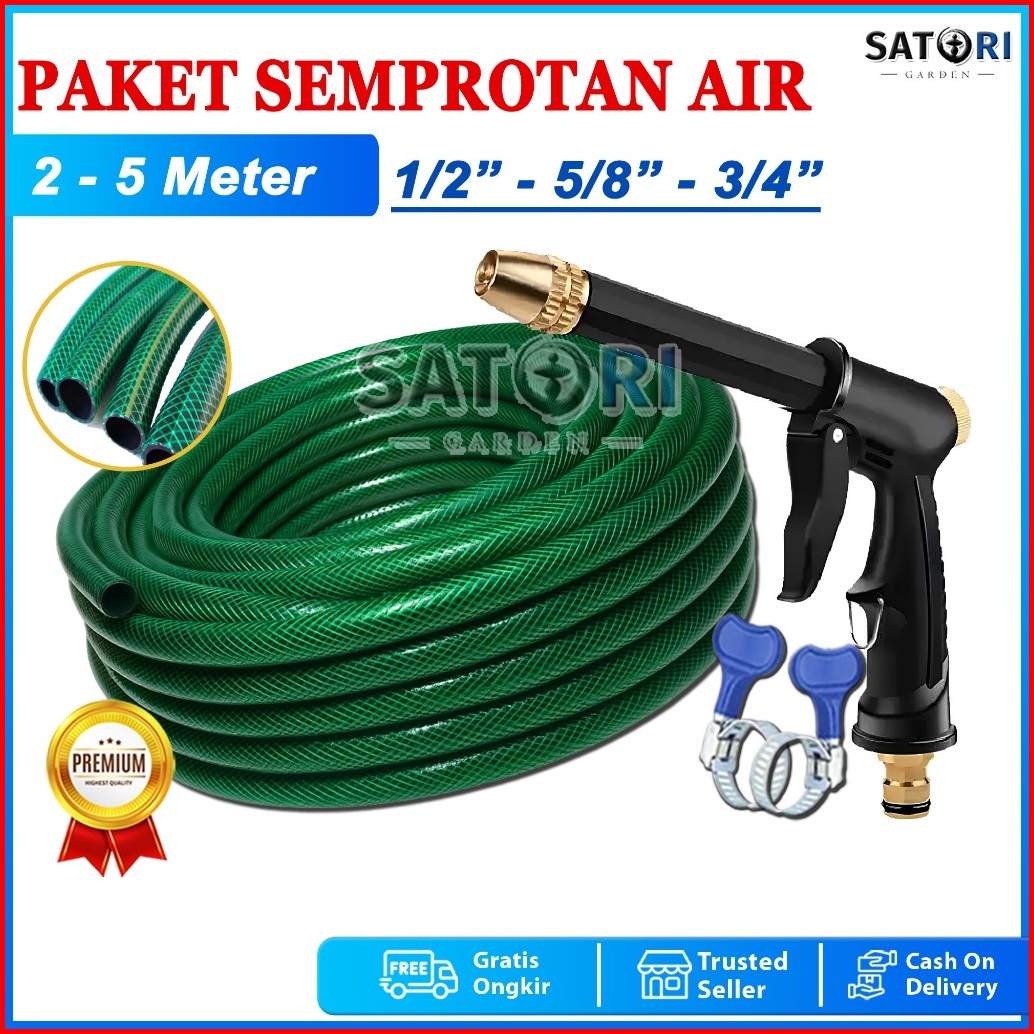 Paket Hemat Kepala Jet Spray Semprotan Selang Air Hijau Anti Lumut 5-10 Meter Untuk Cuci Motor Mobil