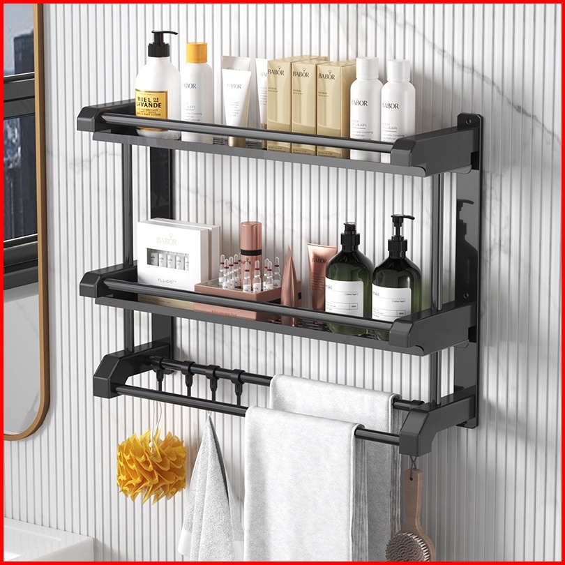 Es Rak Kamar Mandi Dinding Rak Bumbu Dapur Black Edition Rak Multifungsi
