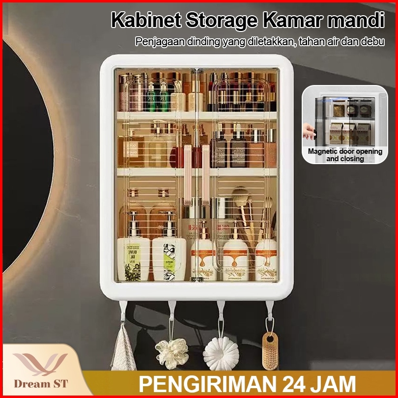 Dream Street Rak Penyimpanan Dinding Lemari Kamar Mandi Gantung Plastik Estetik Rak Penyimpanan Multi Tingkat Dapur Kama