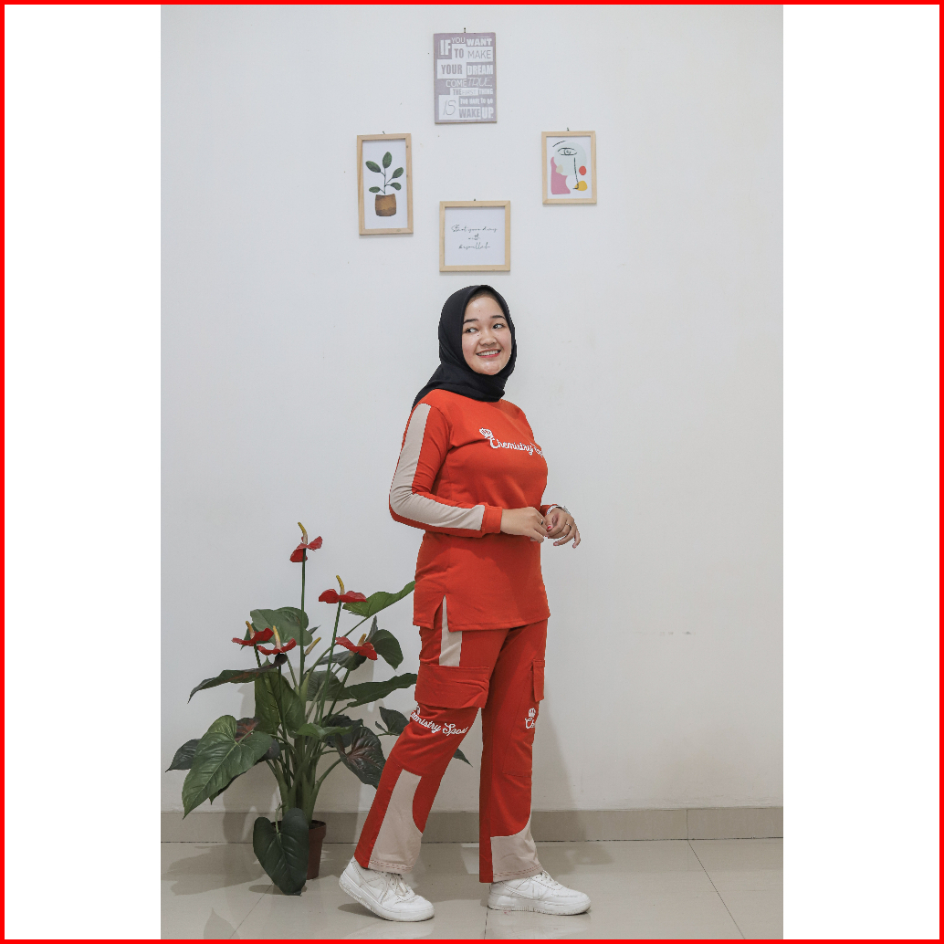 Baju Setelan Olahraga Wanita Muslimah Senam Aerobic Zumba One Set Olahraga Cewek