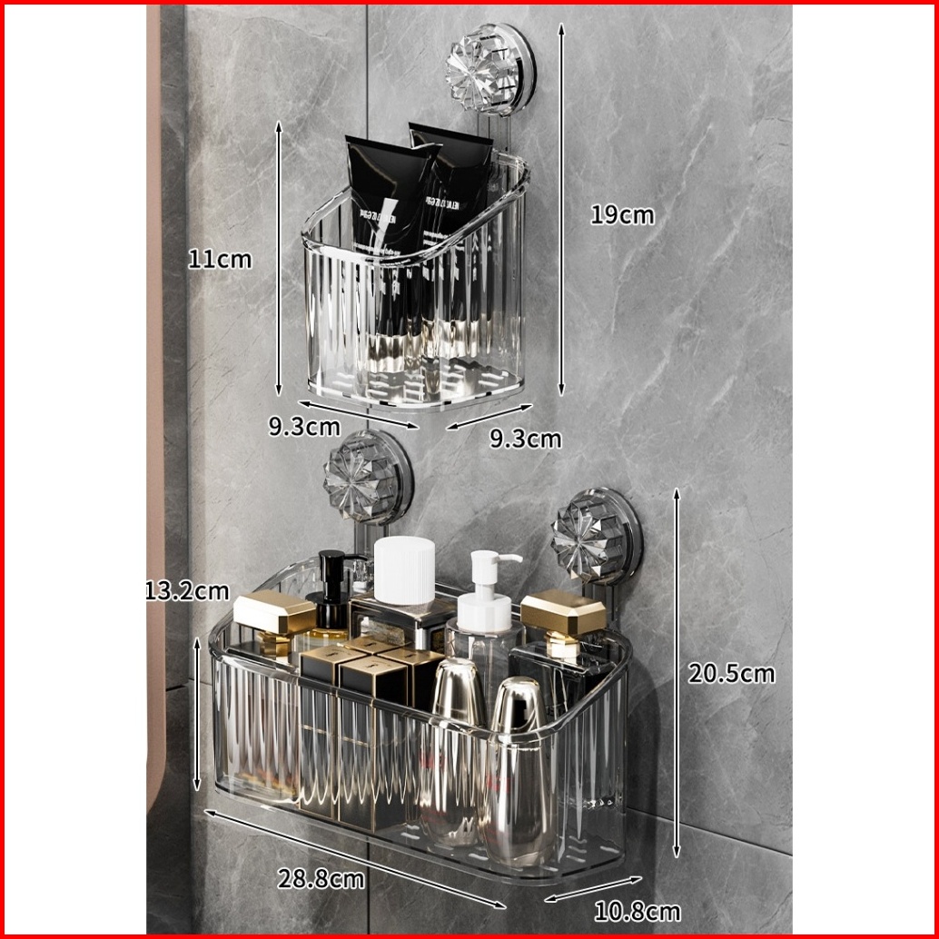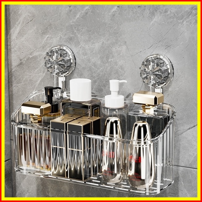 Rak Gantung Kamar Mandi Akrilik Aesthetic Bergaris Tempel Dinding Organizer Storage