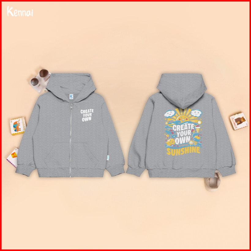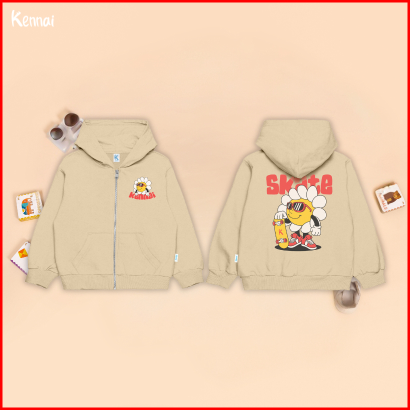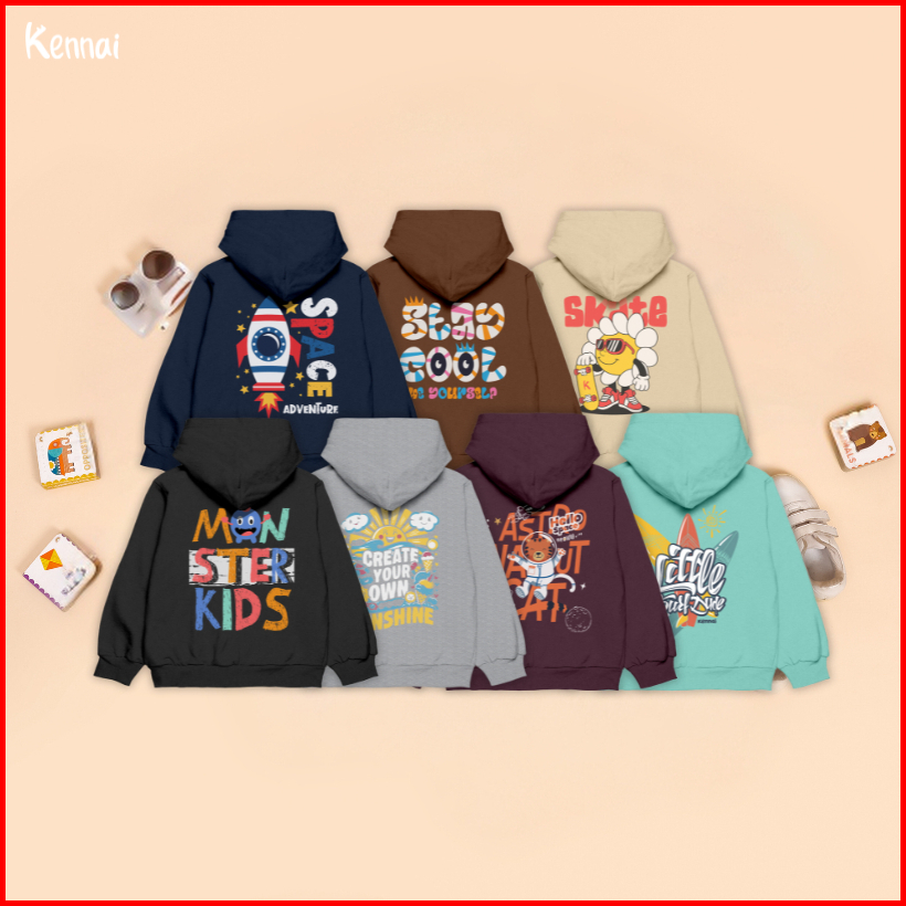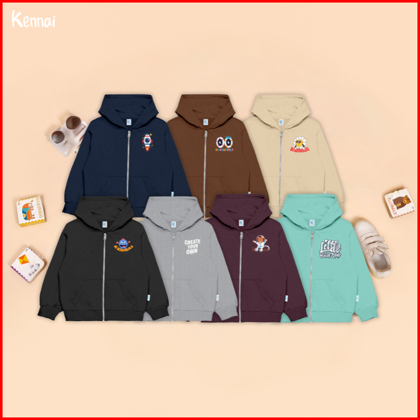 Kennai Hoodie Zipper Art Anak Sweater Anak Unisex Usia 1-12th