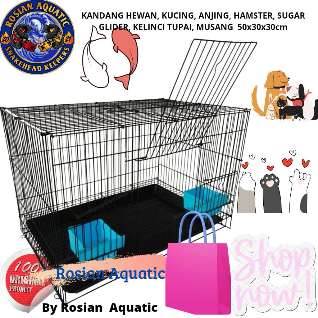 KANDANG BESI LIPAT 50X30X30 FREE 2TEMPAT MAKAN