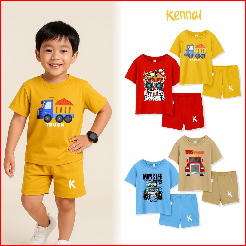 Kennai Set Kaos Anak Lengan Pendek Trucker Bright 1-13 Tahun