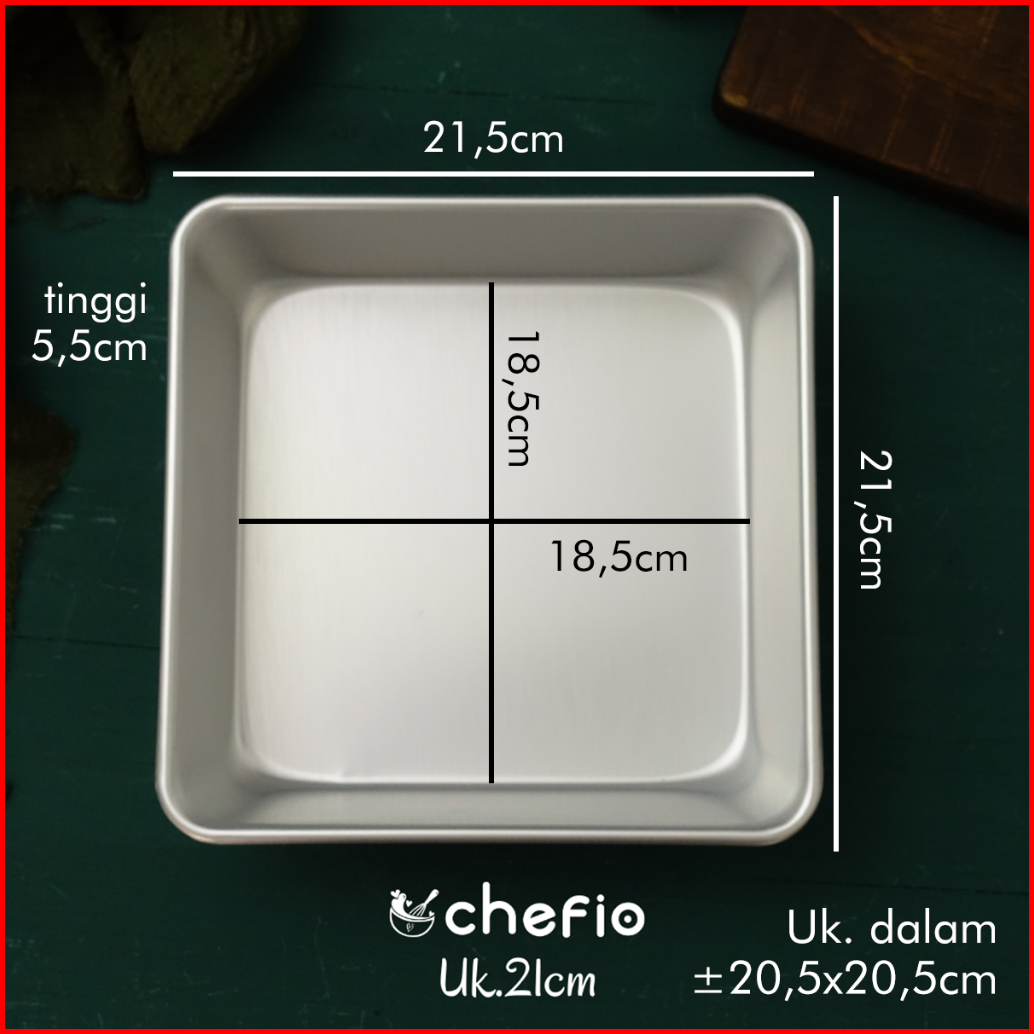 Chefio Loyang Kotak Aluminium Tanpa Sambungan Press Bolu Cake Lapis
