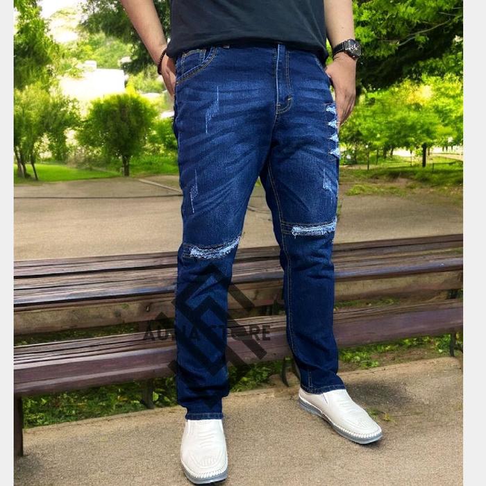 BIG SIZE ROBEK-Celana Jeans Robek JUMBO Pria Premium Original Celana Denim Nyaman Panjang Bandung