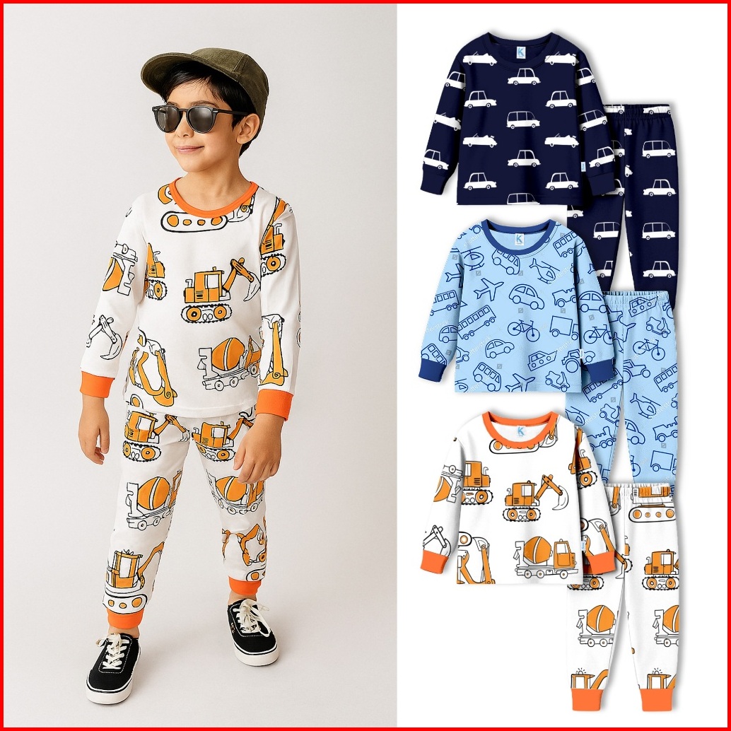 Kennai Kaos Setelan Lengan Panjang Oneset Anak Laki Laki Baju Anak Perempuan 1-12 Tahun Series Transport Lover