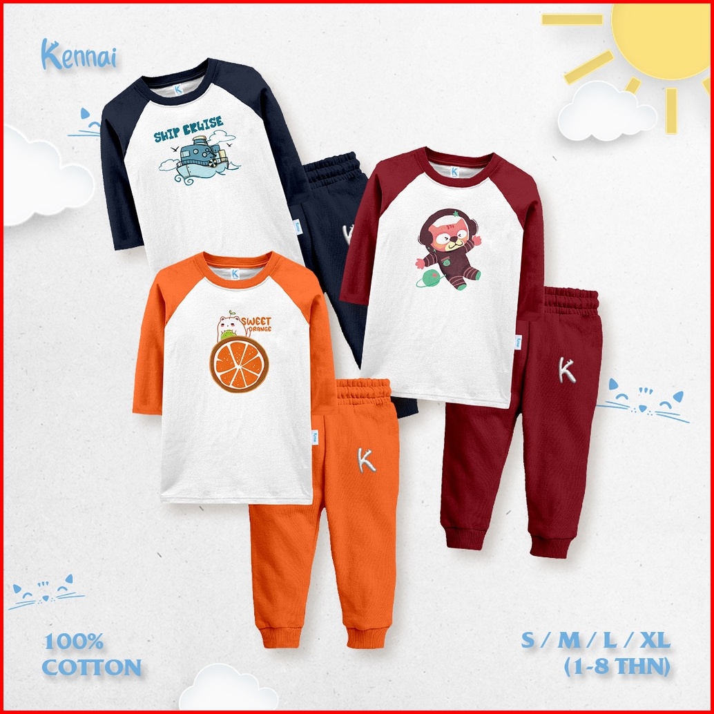 Kennai Setelan Long Sleeve Raglan Anak Unisex Graphic Garou