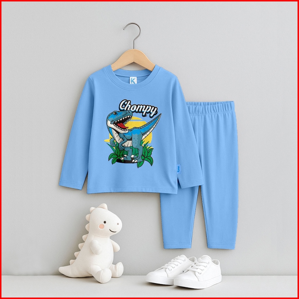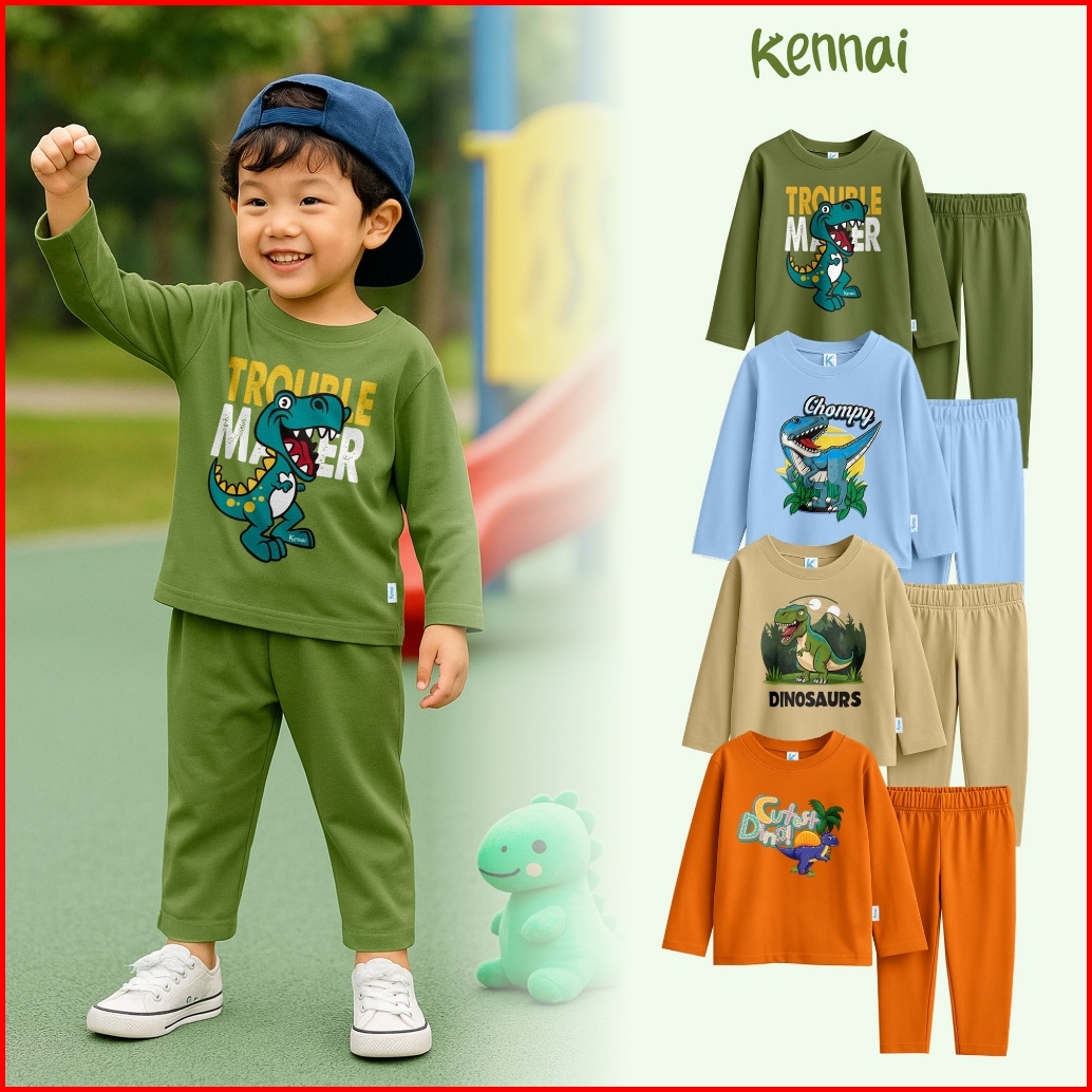 Kennai Baju Piyama Lengan Panjang Setelan Laki Laki Setelan Perempuan Series Trex Trouble