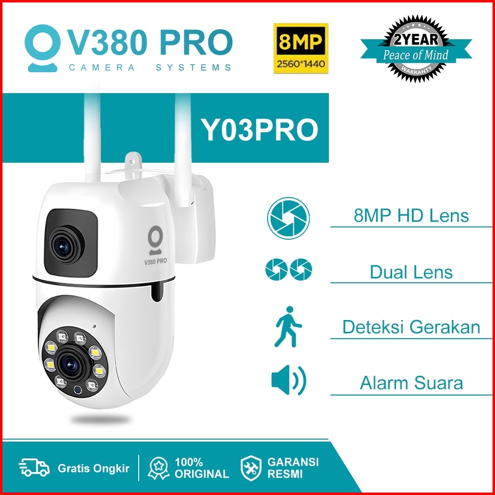 V380 Pro Y03pro 8mp Dual Lens Smart Camera 360 Deteksi Gerakan 2x Akurat Pengingat Real-time Privasi Terenkripsi Aman Un