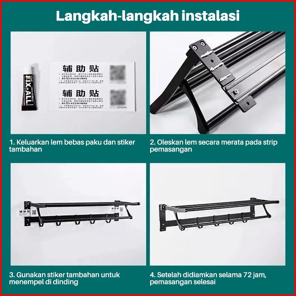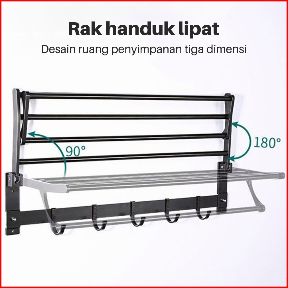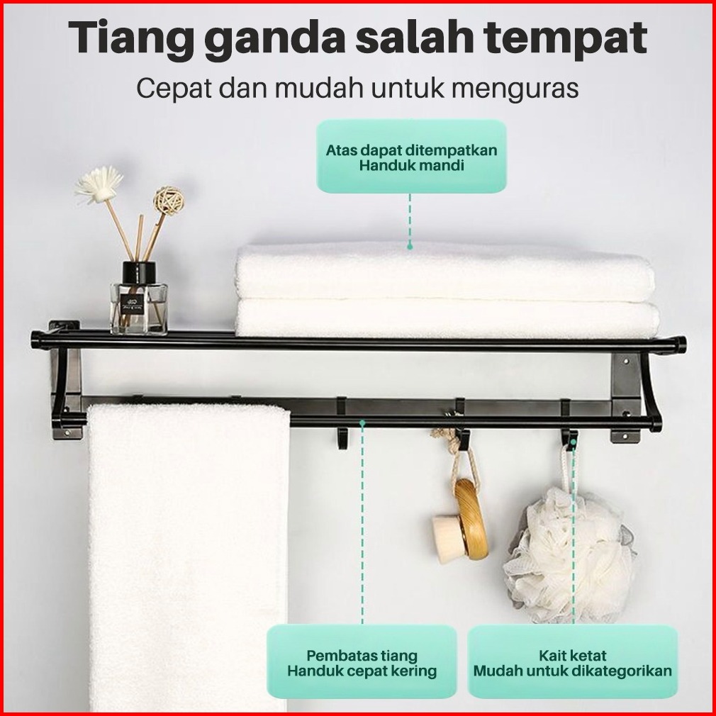 Rak Gantungan Handuk 50 60cm Rak Handuk Lipat Pemasangan Tanpa Bor Anti Karat