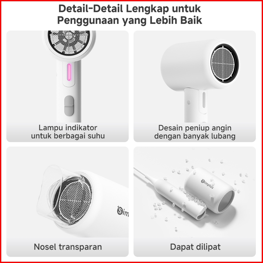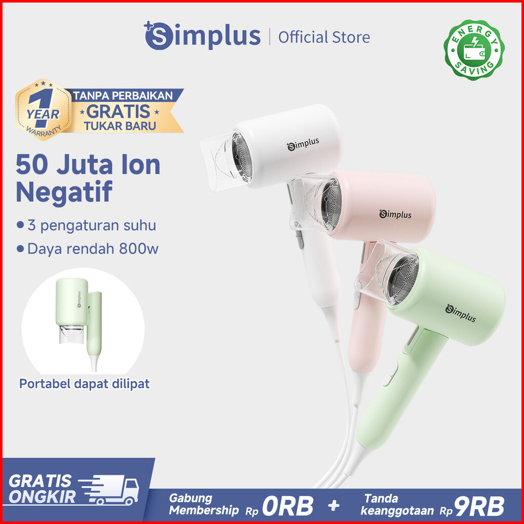Simplus Hair Dryer 800w Foldable Pengering Rambut Dapat Dilipat Perawatan Ion Negatif 3 Tingkat Suhu