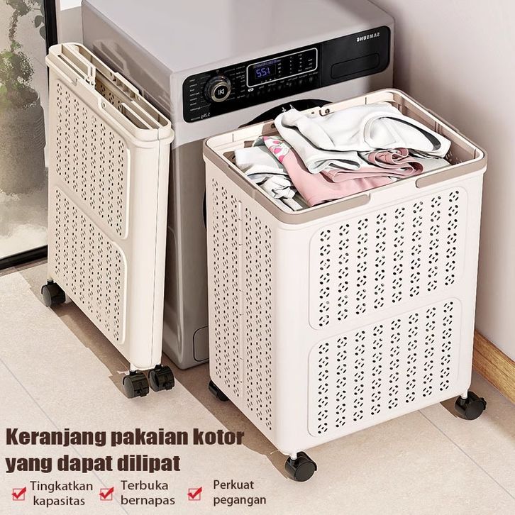 Keranjang Baju Kotor Lipat Portable Dengan Roda Laundry Basket