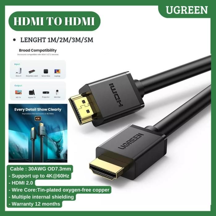 UGREEN kabel hdmi to hdmi ke 2.0 4K 3meter 5meter 1080p Kuning plated - 10108OPJ 3meter