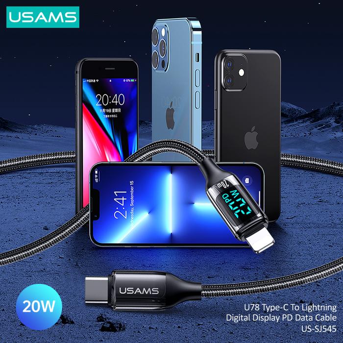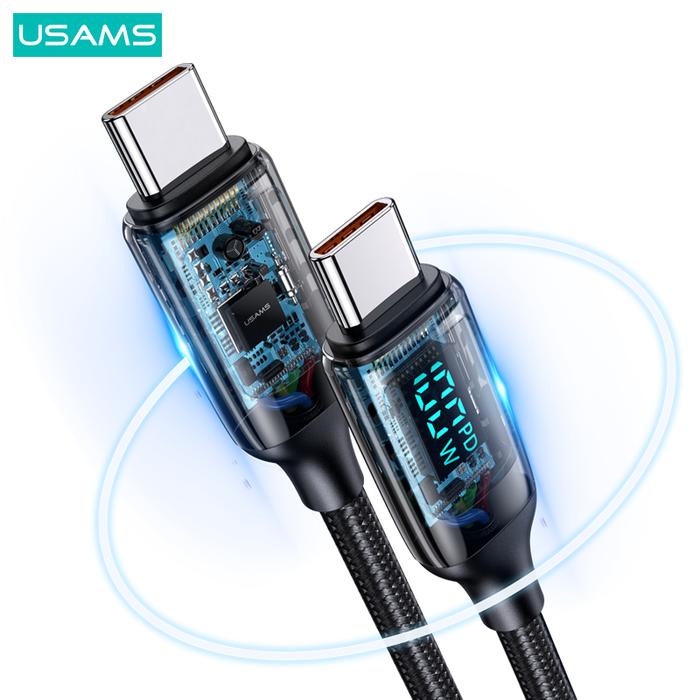 USAMS U78 Kabel Data Fast Charging Type C to Type C Digital Display 100W - 1.2m Hitam