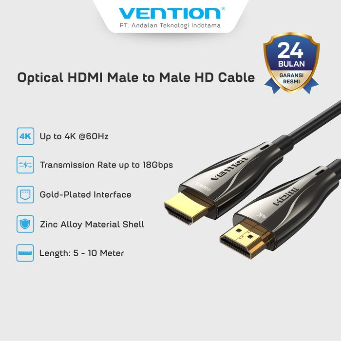 Vention Kabel HDMI 2.0 Fiber Optical Cable Male to Male Zink Alloy 5M 10M - ALA - BLACK 10M