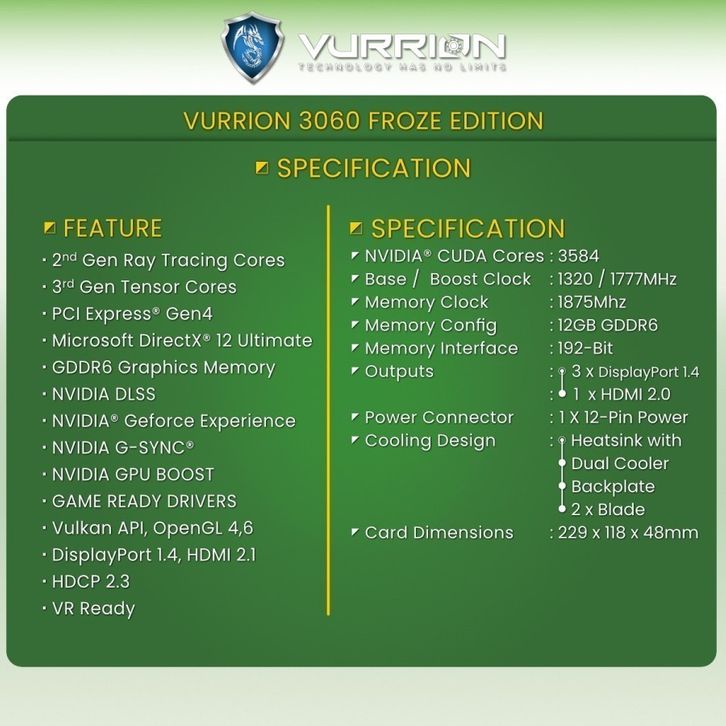 Vurrion Geforce RTX 3060 12GB Froztine GDDR6 192BIT
