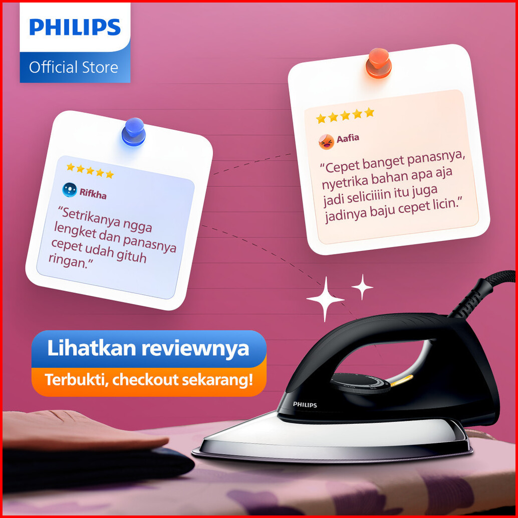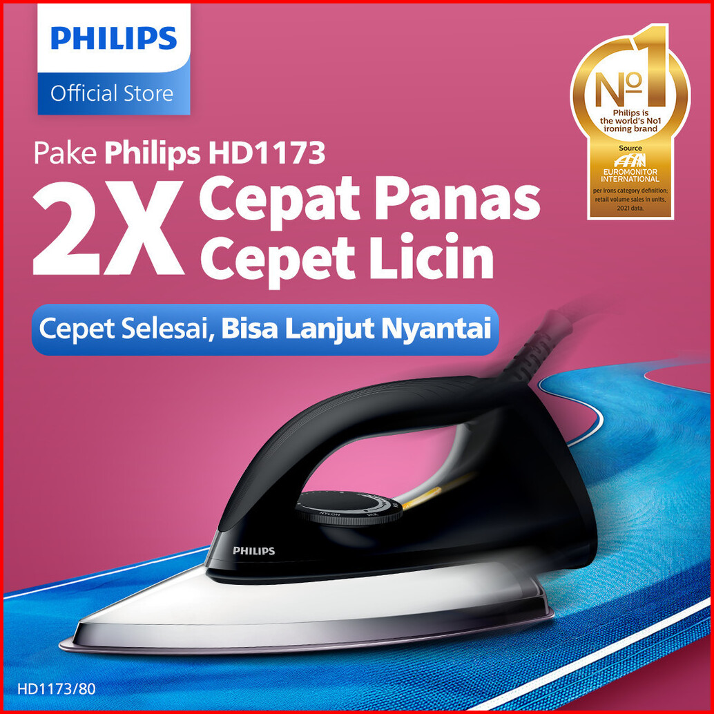 Philips Setrika Kering Hd1173 80 Hitam Ceramic 4 Lapis Anti-lengket Seterika Philips Gosokan Baju