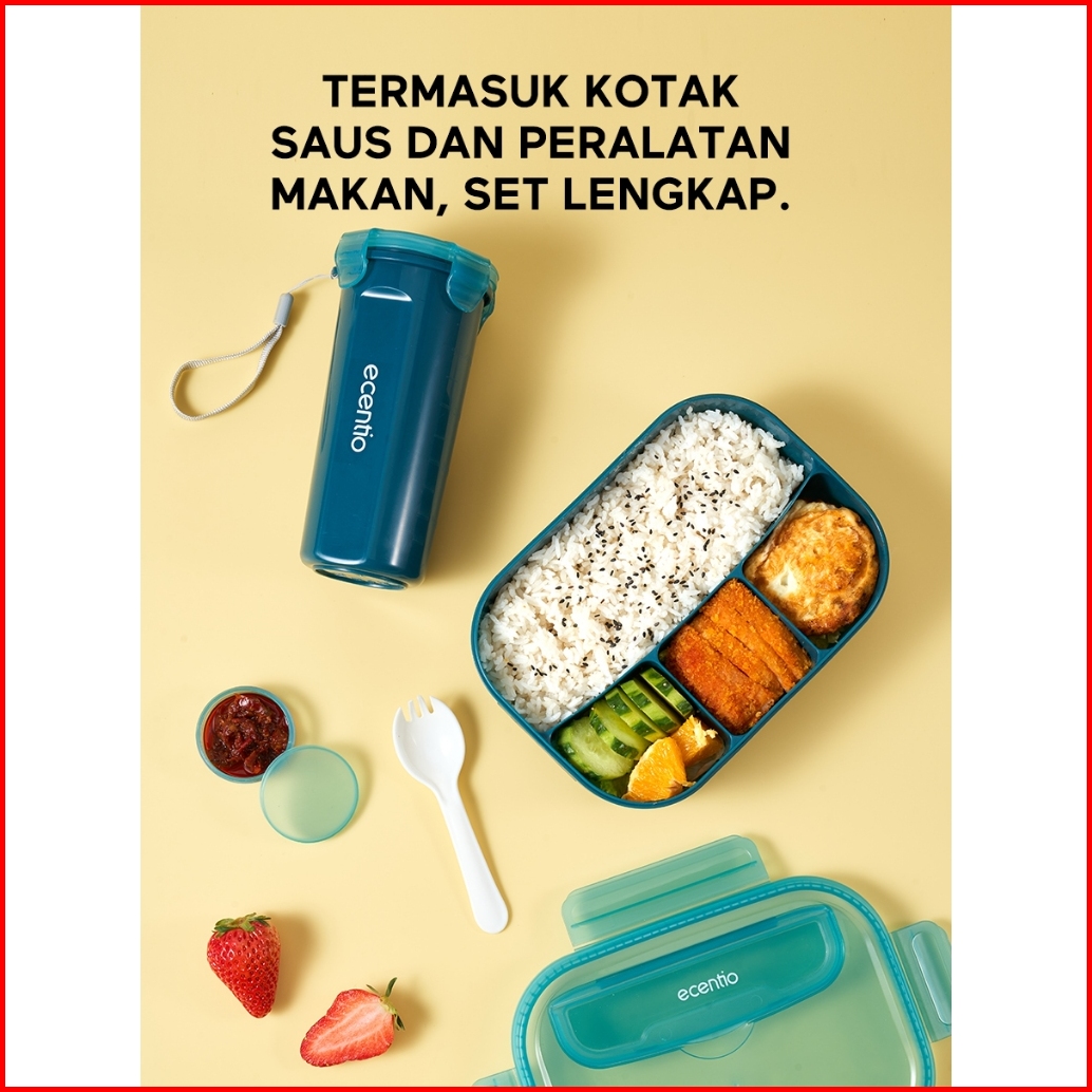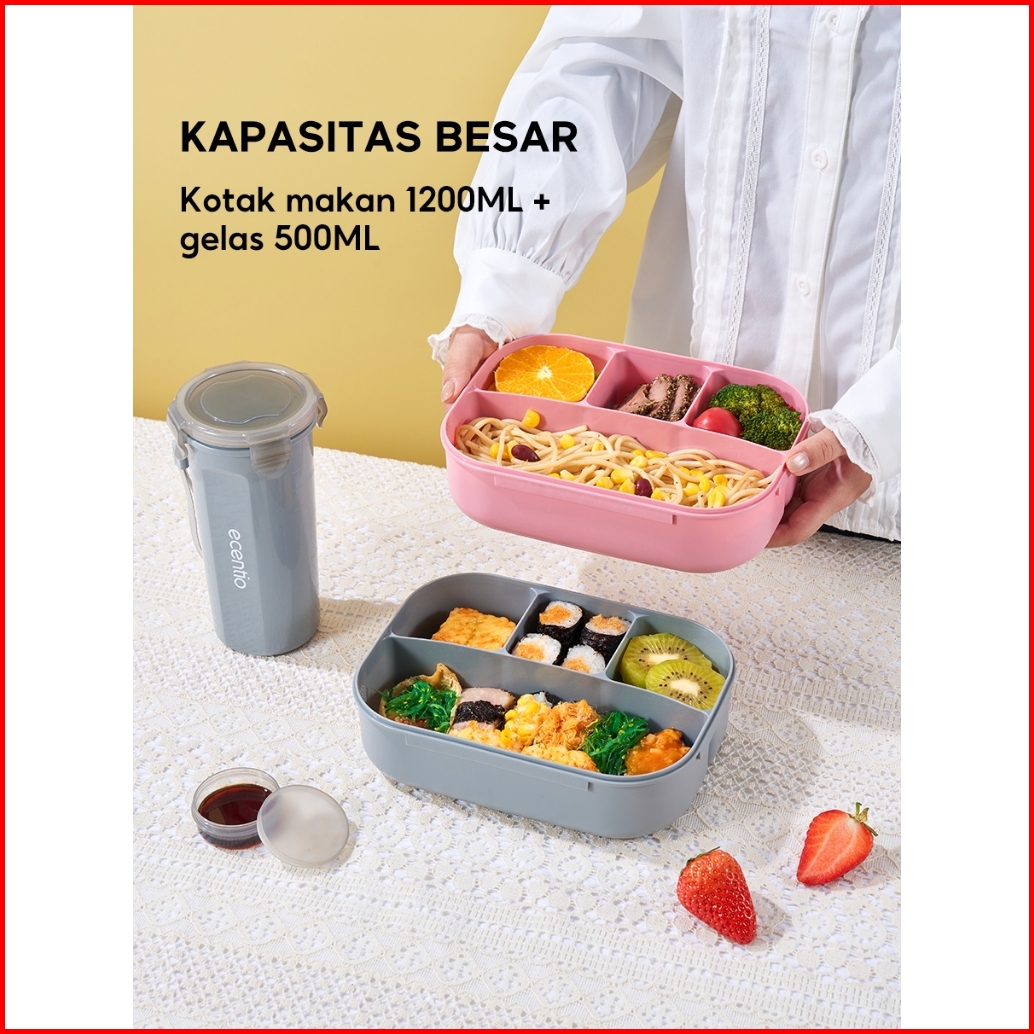 Ecentio Kotak Bekal Anti Tumpah Kotak Tempat Bekal 1200ml 500ml Lunch Box Set Free Sendok Kotak Saus Bpa Free