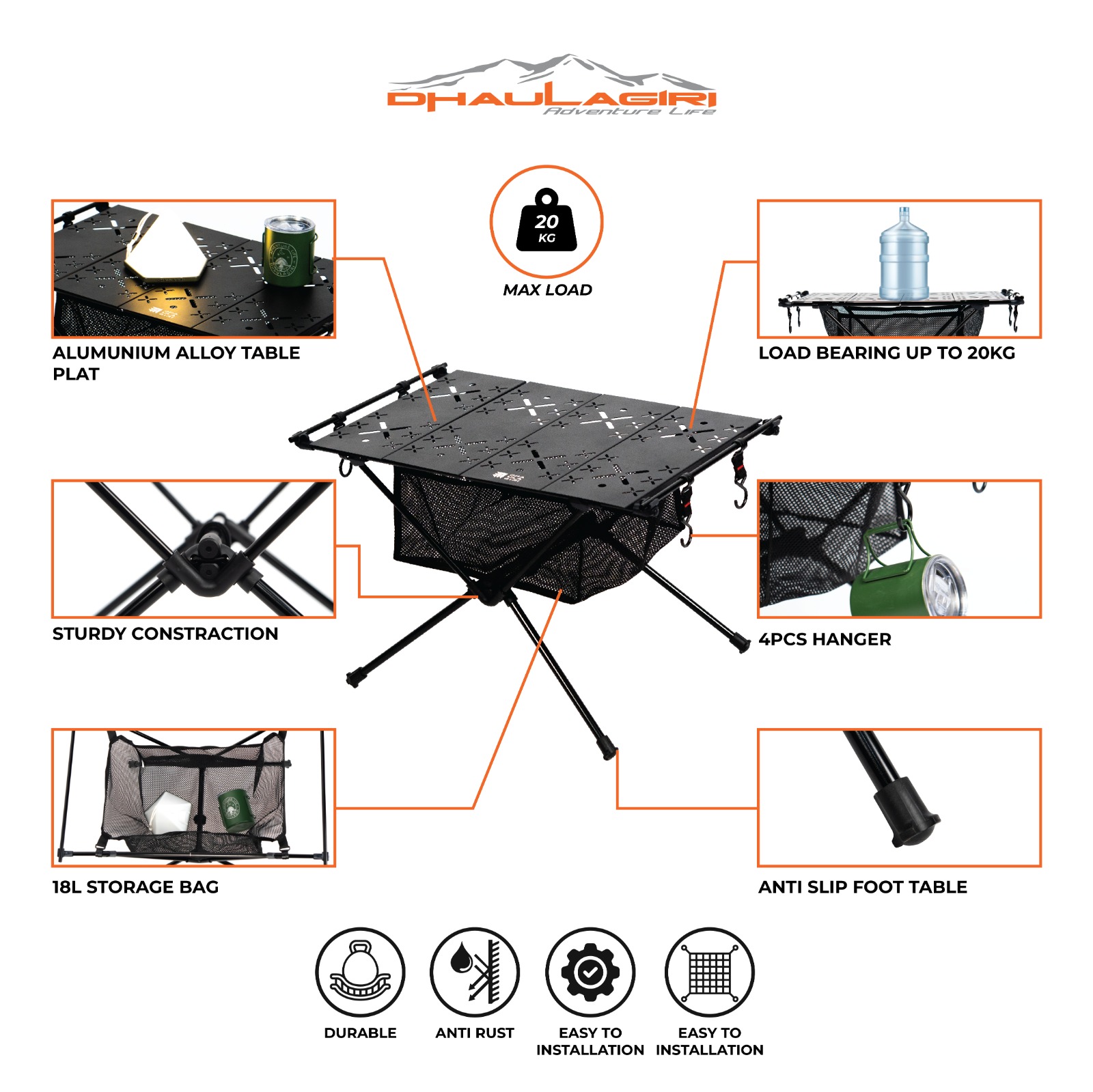 DHAULAGIRI FOLDING TABLE XT / FOLDING TABLE FOR CAMPING / MEJA LIPAT RINGAN DAN MUDAH DIBAWA / MEJA LIPAT UNTUK BERKEMAH