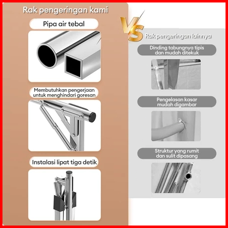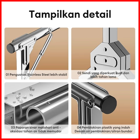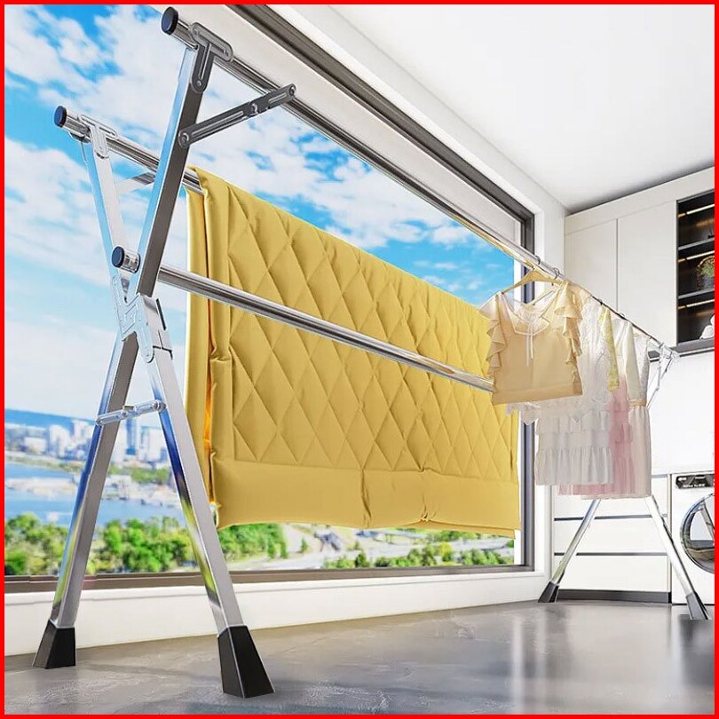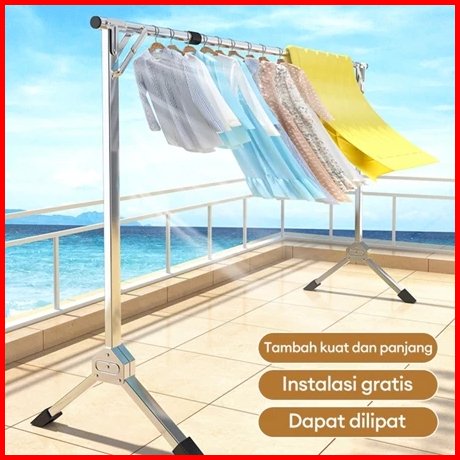 Jemuran Baju Stainless Steel 240cm Jemuran Pakaian Lipat Basah Tahan Karat Jemuran Hanger Portable Jemuran Baju Lipat Je