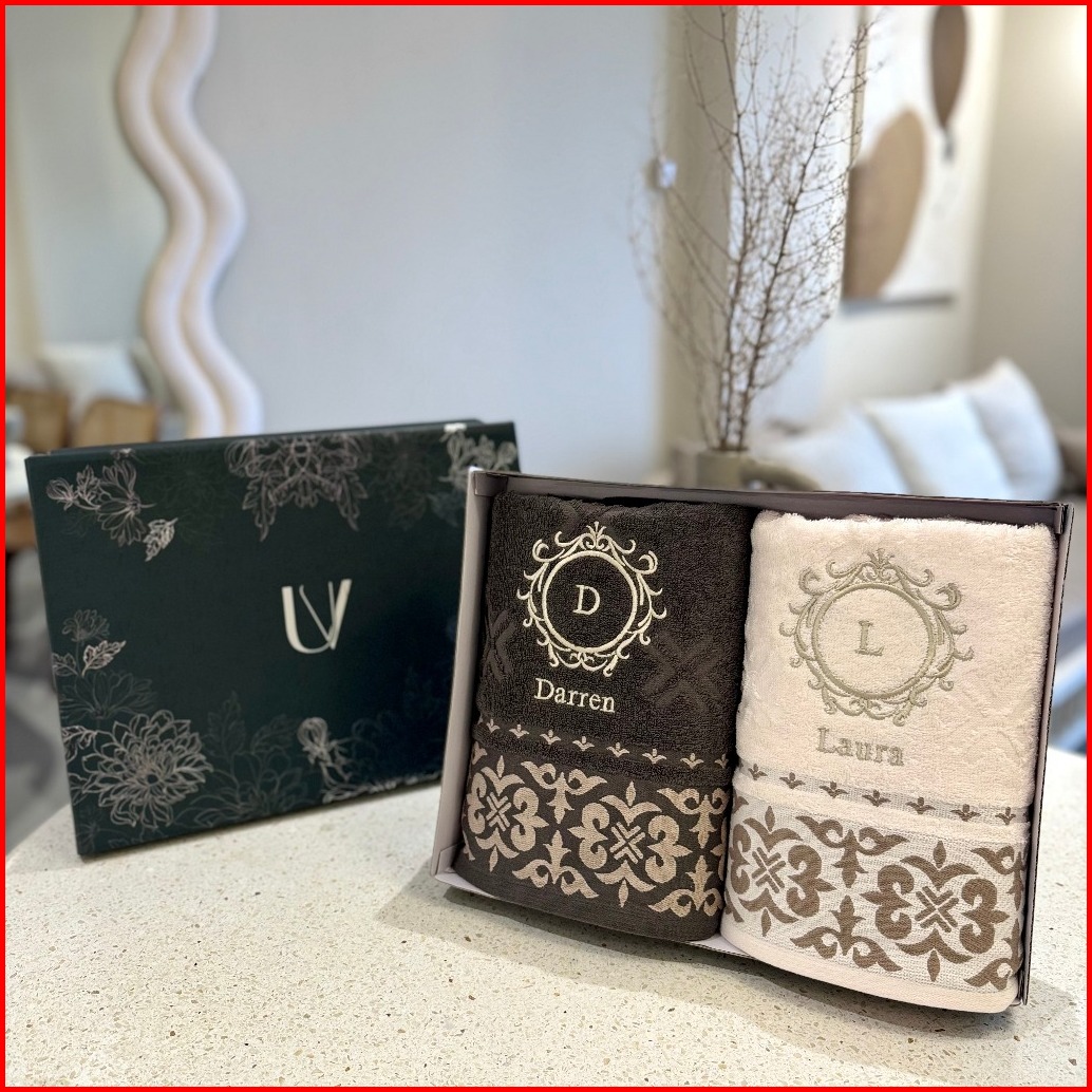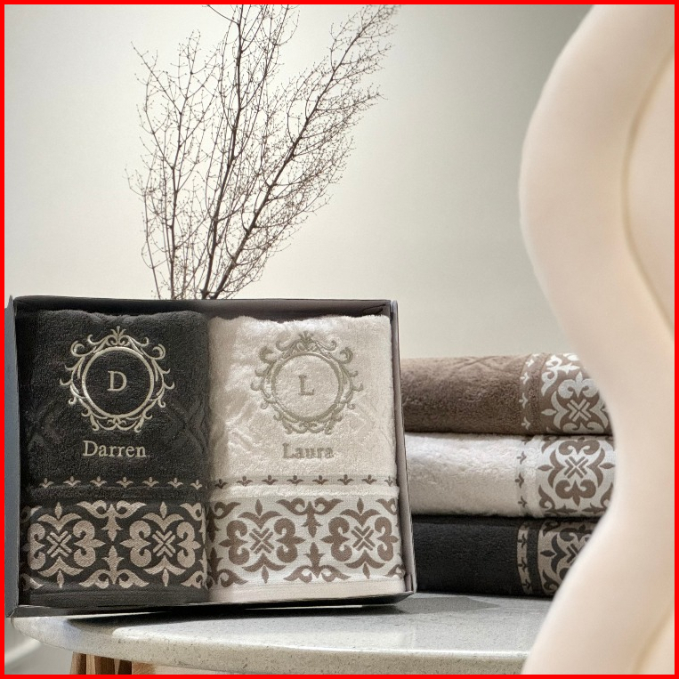 Luvry - Handuk Bordir Couple Athena Tanpa Po Gift Handuk Premium Couple Custom Bordir Couple Towel