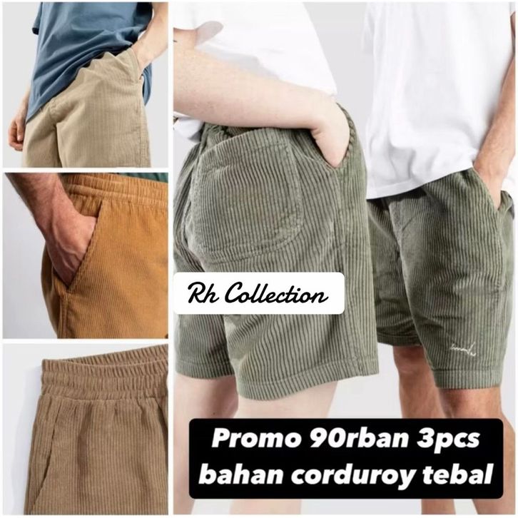 PAKET 3 PCS Celana Corduroy Pria Pendek Boardshort Surfing Distro