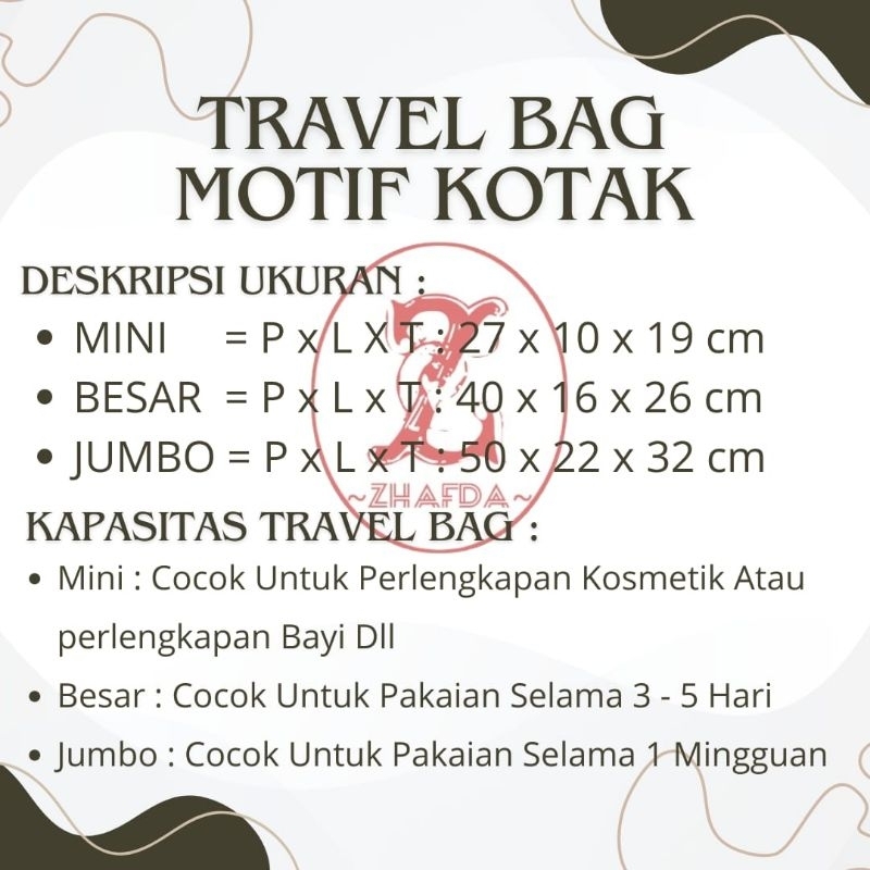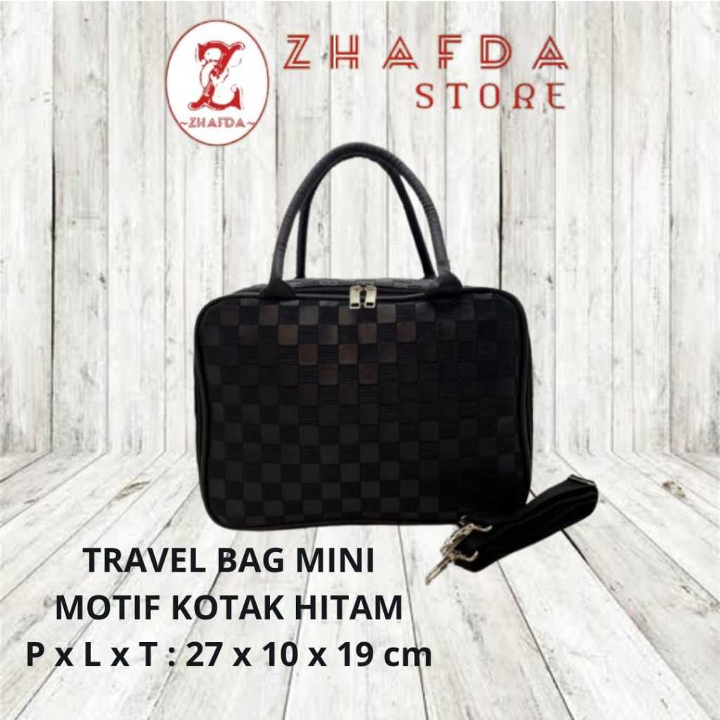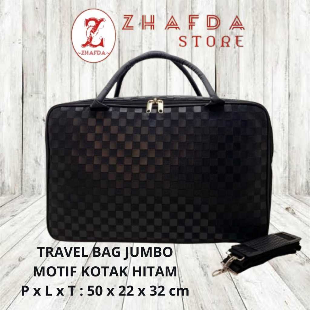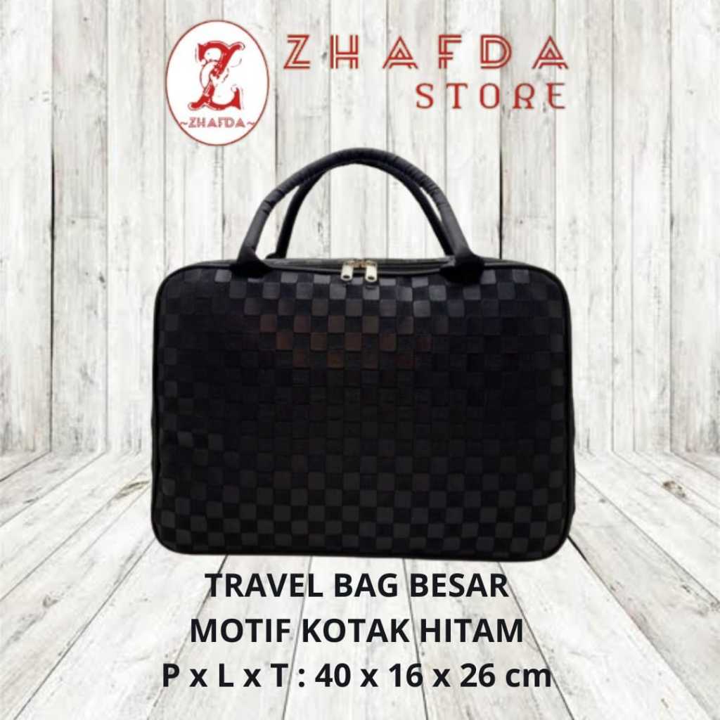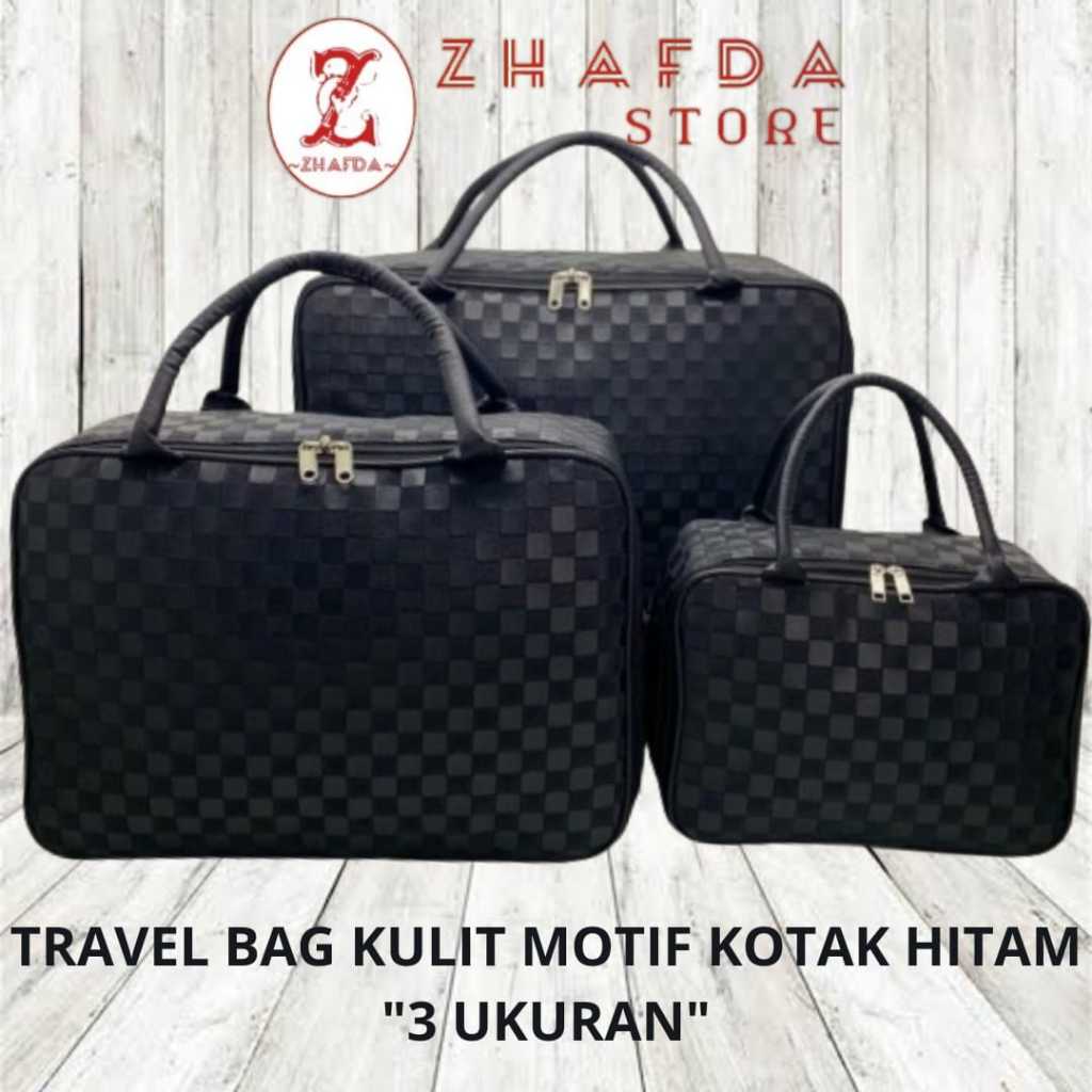 Travel Bag Kulit Waterproof Motif Kotak Warna Hitam / Tas Pakaian / Tas Travel / Tas Travel Bag 3 Ukuran / Tas Travel Ca