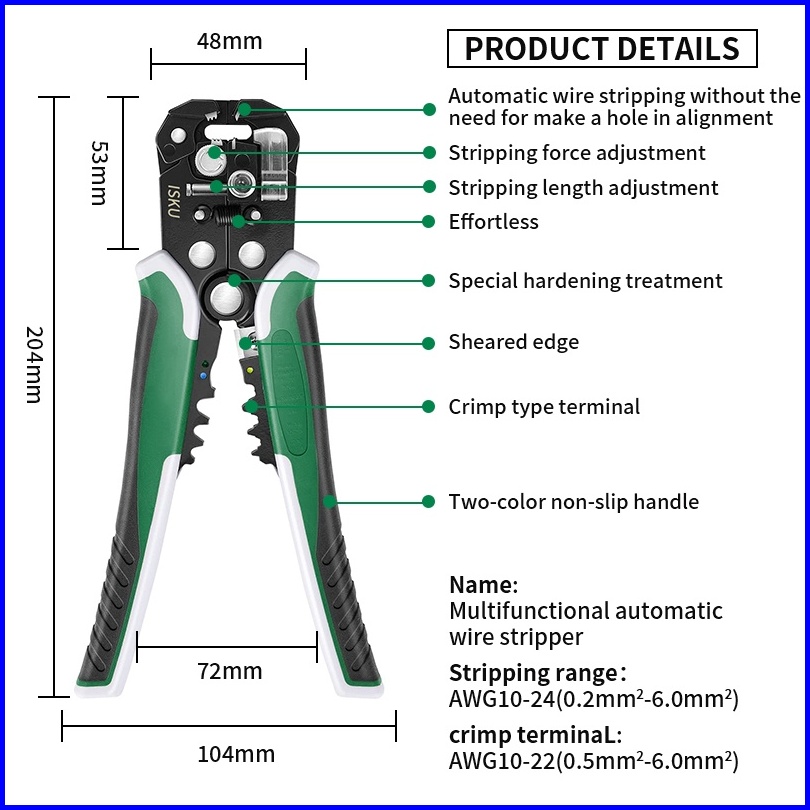Isku Tang Kupas Potong Kabel Multifungsi Automatic Wire Tang Stripper Crimper Wire Pengupas Kulit Kabel Wire Pembuka Cut