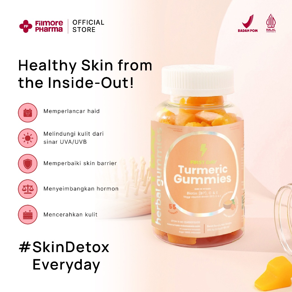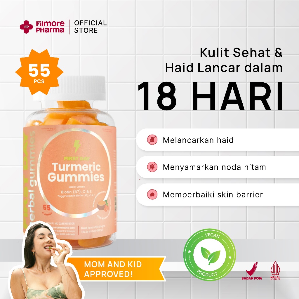 FIRST DAY by FILMORE Turmeric Gummies | Kulit Sehat & Lancar Haid, Hormon dan Promil
